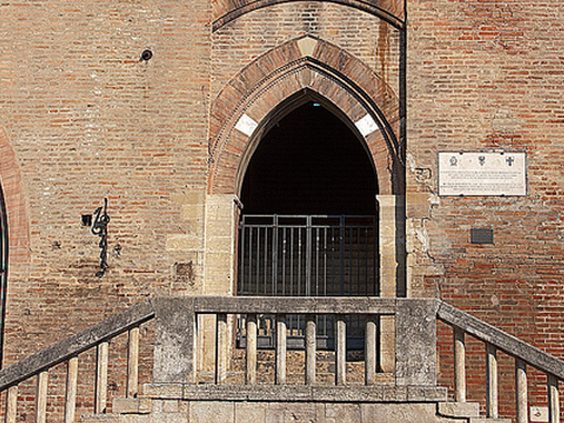 Una scalinata esterna conduce al salone dell’Arengo, uno tra i più belli d’Italia (vi era il consiglio del popolo).